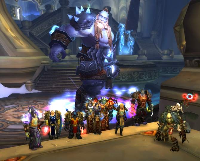 Es schien bereits alles verloren, als der Lichkönig unsere gesamte Truppe ins Jenseits beförderte. Doch just zu diesem Zeitpunkt kam Hochlord Tirion Fordring aus seinem Eisgefängnis frei und zerschmetterte Frostmourne, das Schwert des Lichkönigs. Während die Seelen aus dem gebrochenen Schwert den Tyrannen in einem Wirbelwind bannten, holte uns der Hochlord zurück ins Reich der Lebenden.